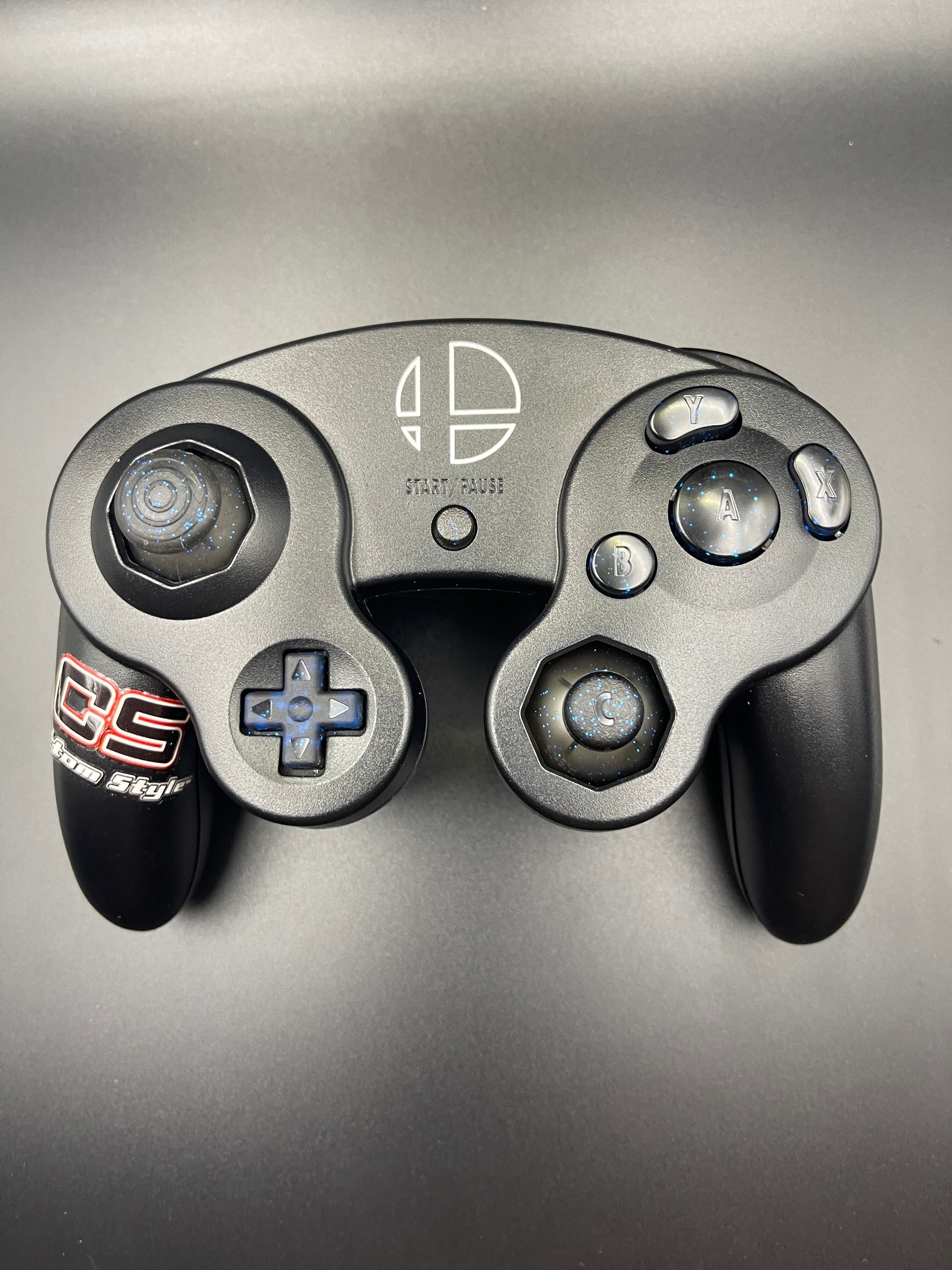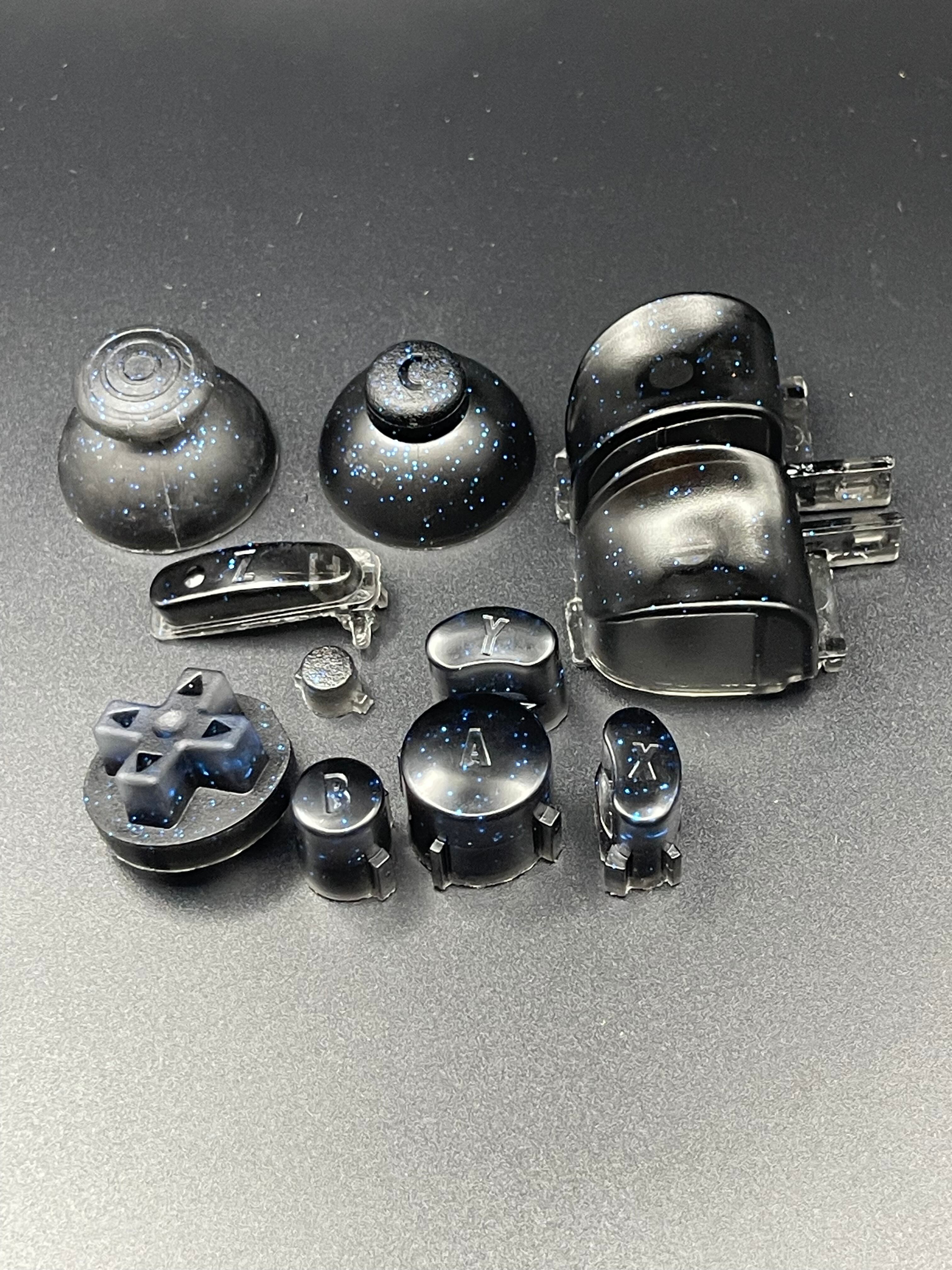ゲームキューブコントローラー カスタムボタン 純正形状(黒/青ラメ)